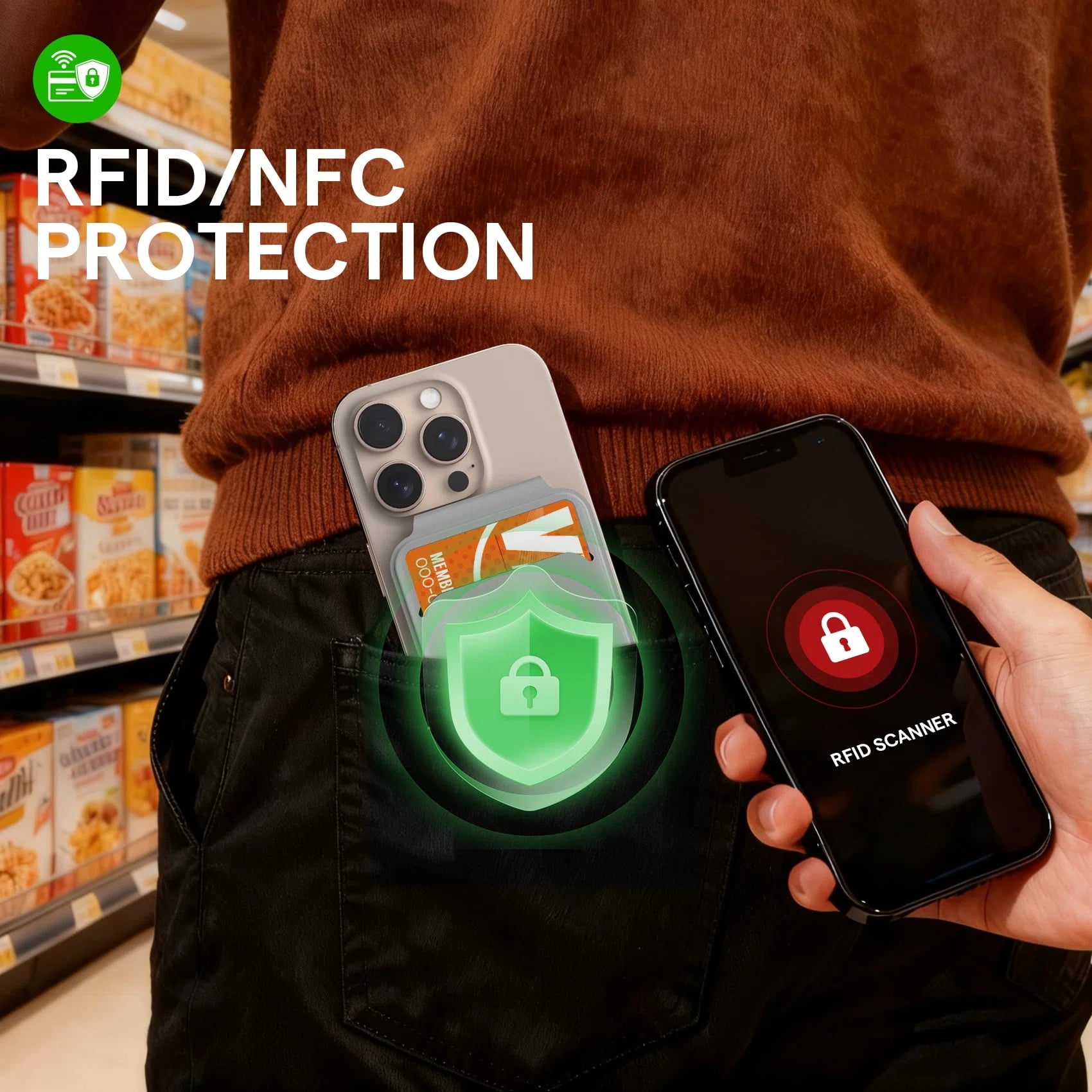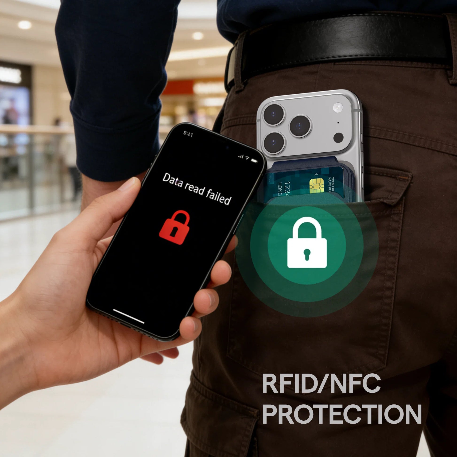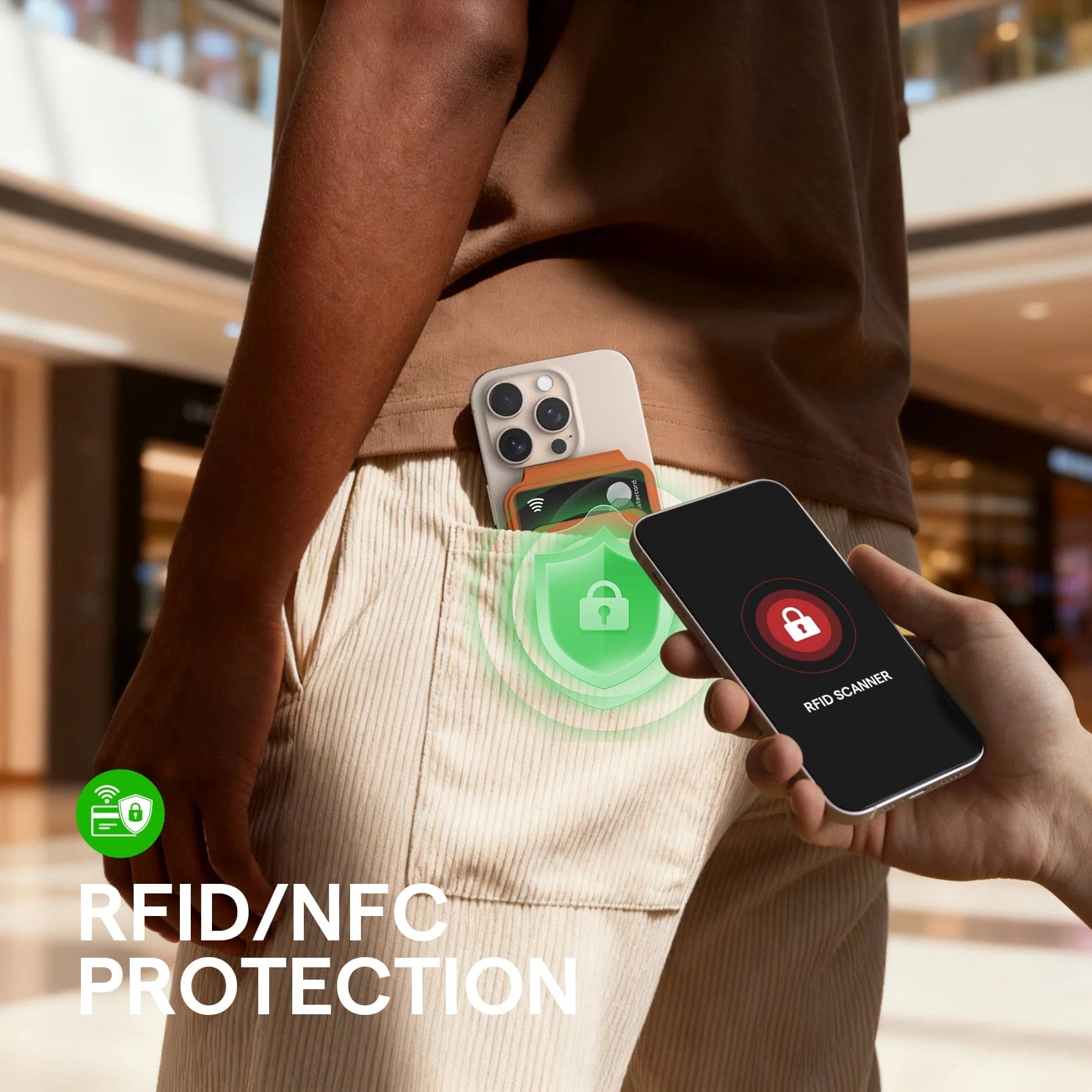 RFID blocking tech, anti-theft and accidental scans.